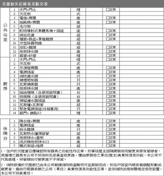 交屋保固作業程序 初步屋況自行檢驗查核及缺失改善 針對已初驗客戶,進行二次複驗。 缺失改善完成,通知客戶進行交屋手續。 管理中心設置屋況維修紀錄表,定期與客戶追蹤屋況之情形。 本案所有設備,依合約保固期間內定期保養並追蹤各戶屋況。